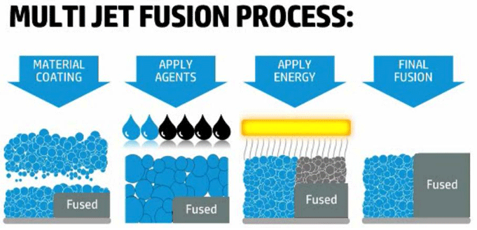 Schéma de fonctionnnement de l'impression 3D par HP Multi Jet Fusion